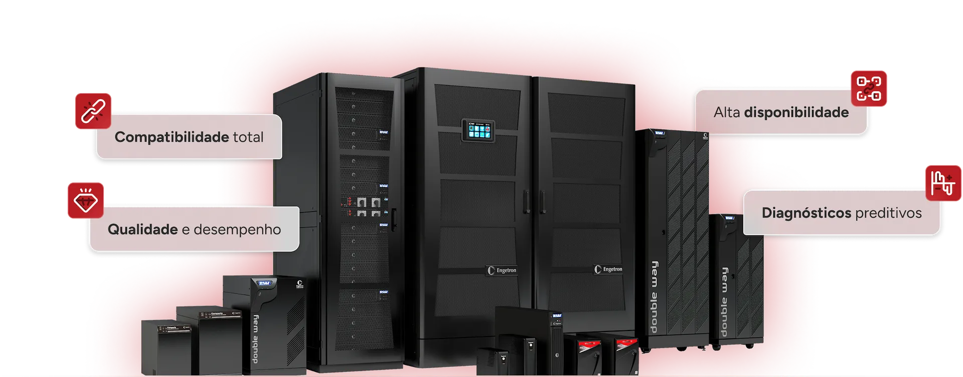 Permitem composições para autonomias de até 6 horas e até 35U disponíveis para cargas de TI, além de linha completa de acessórios para otimização de espaço.