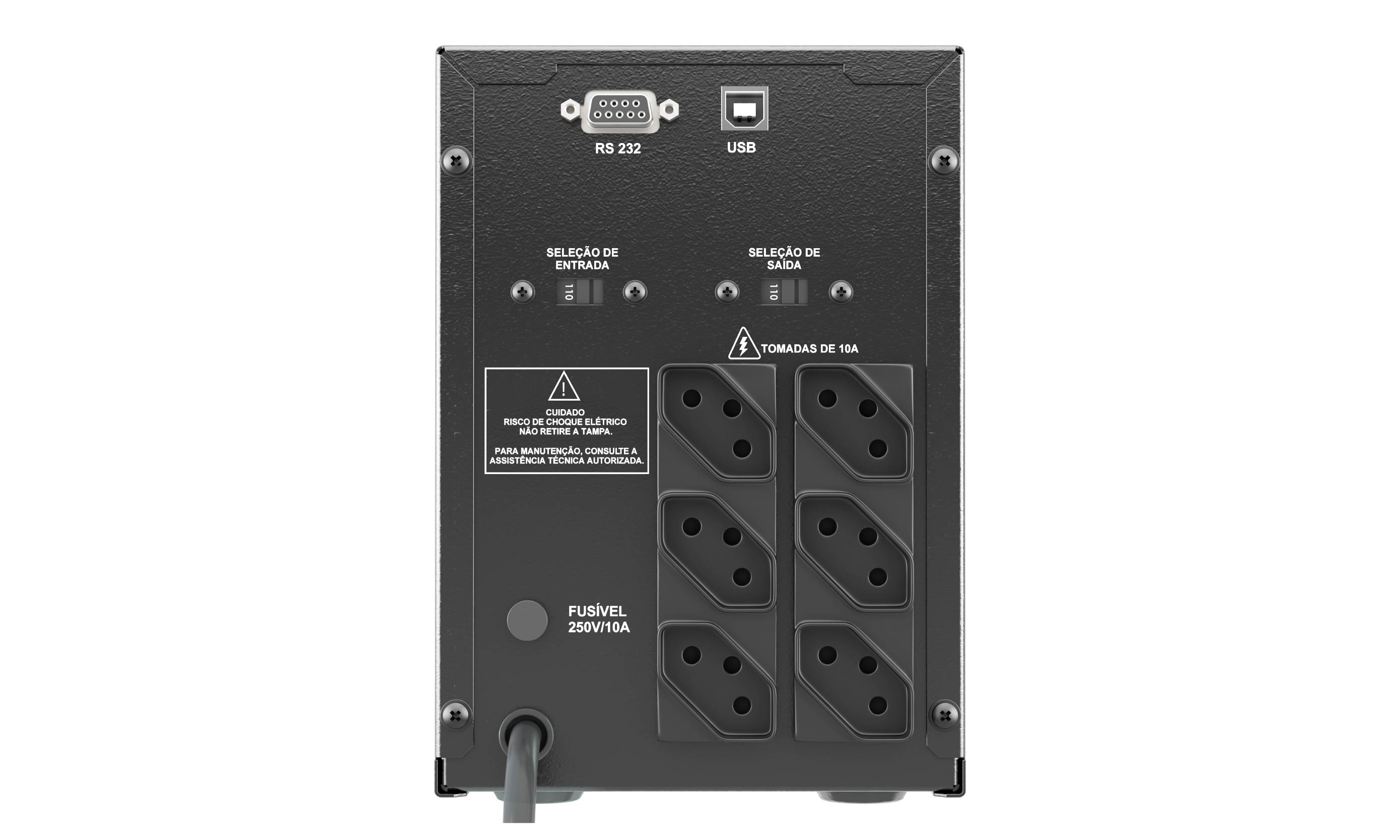 Conexão de saída: 6 tomadas 10A padrão ABNT NBR14136.