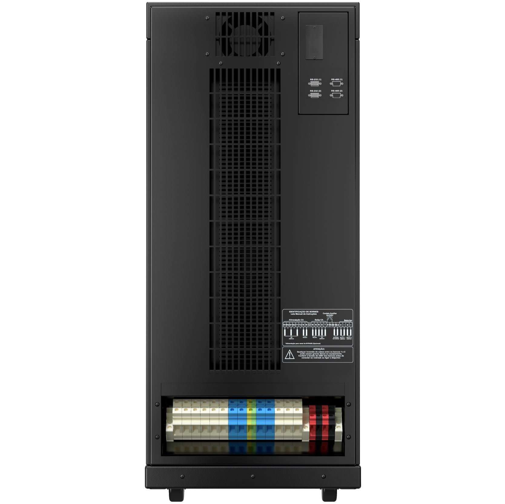 O Nobreak/UPS Trifásico DWTT 10kVA-380 é dupla conversão, possui microprocessador DSP, chaveamento PWM, IGBT no retificador e alto rendimento, com fator de potência 0,99.