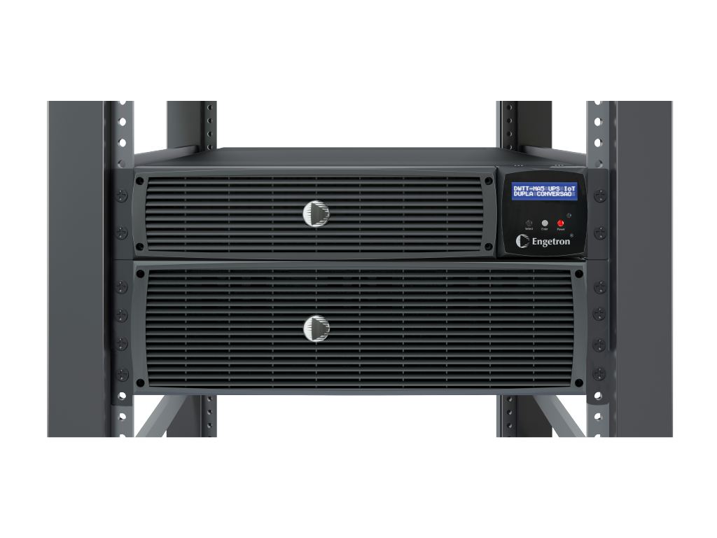 Alta Disponibilidade – Energia senoidal pura e estabilizada com paralelismo ativo (N+1) ou Dual Bus em rack 19”.